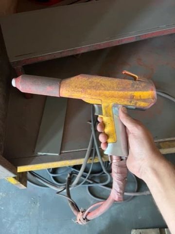 Kompletní ruční elektrostatické nanášecí zařízení pro aplikaci práškových barev s podáváním barvy z krabice.